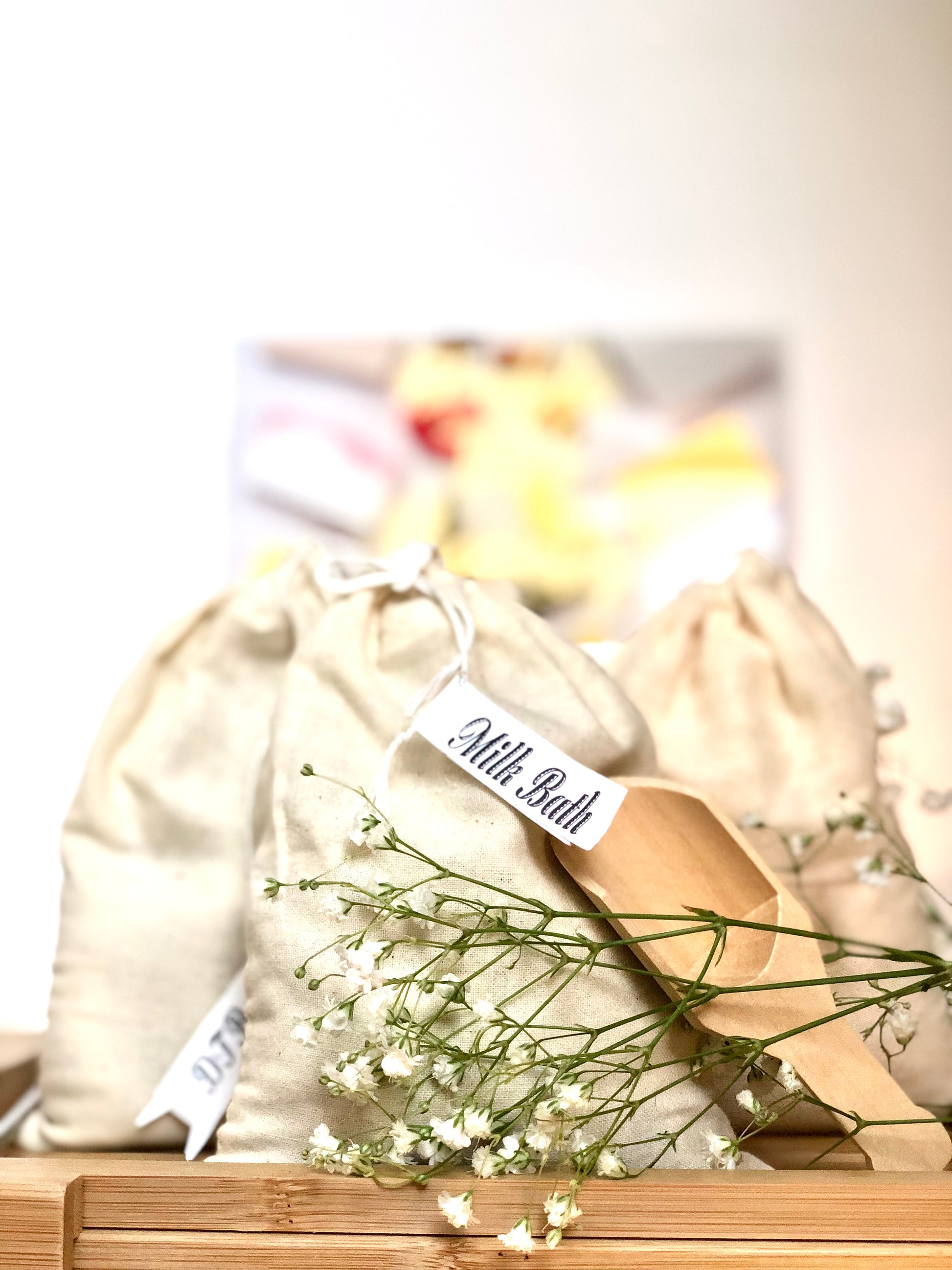 A Large tea bag full of skin loving goodness. Goats milk, Oatmeal, Kokum Butter, and Kaolin Clay are the star ingredients that help to calm and moisturize skin. Scented with Vanilla, Honey, and Oatmeal fragrance. Last, your water will be a milky white color giving you beautiful spa experience!!